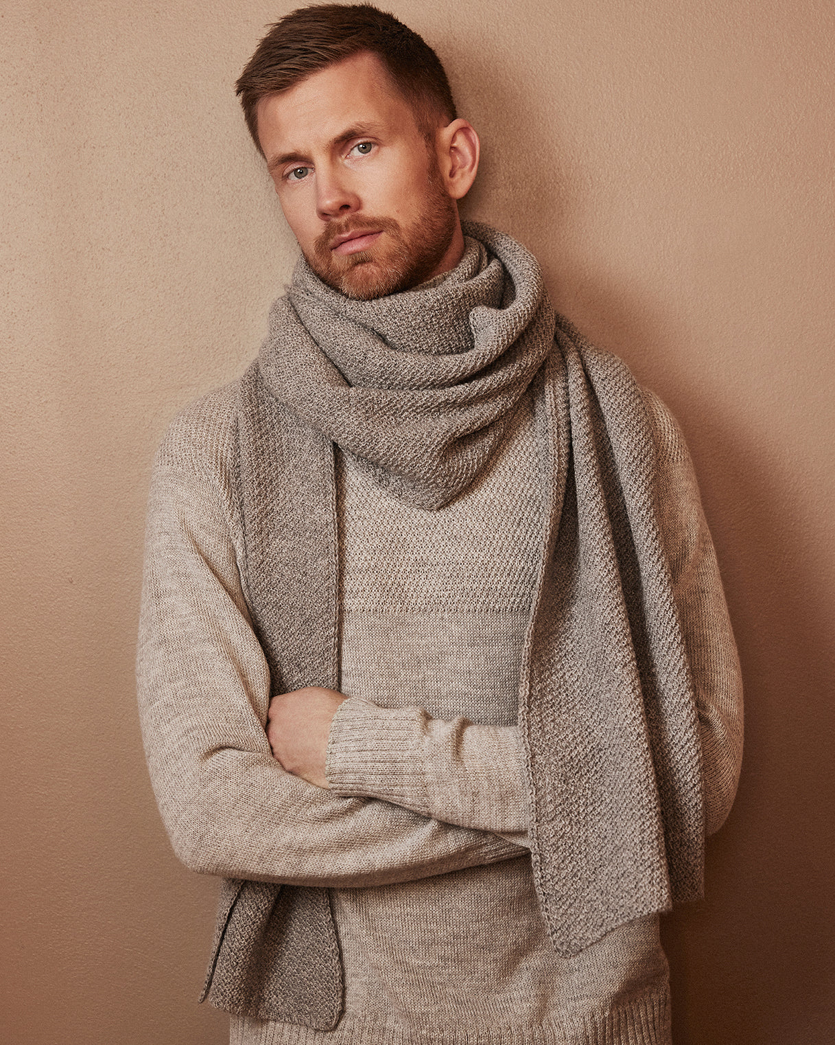 The Pearl Knit scarf was designed with the idea of making an unusually long scarf that is almost a garment on its own and can be wrapped around the neck in various ways. It is warm and soft from high quality sustainable Alpaca wool.